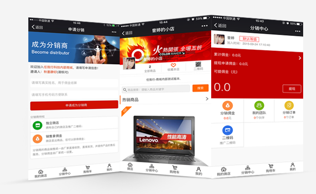 微分销是一款"微商城+微分销"多层级一体化微信分销成交平台,以总部布控,发动分销商,发展消费者参与分销建立二级店铺的微信店中店系统,协助企业打造“企业微商城+代理分店+粉丝微店”的多层级微信创客营销模式,基于朋友圈的传播,店中店模式可快速复制店铺,轻松将成千上万的粉丝变成微信分销商,迅速扩展销售渠道和提升产品知名度。