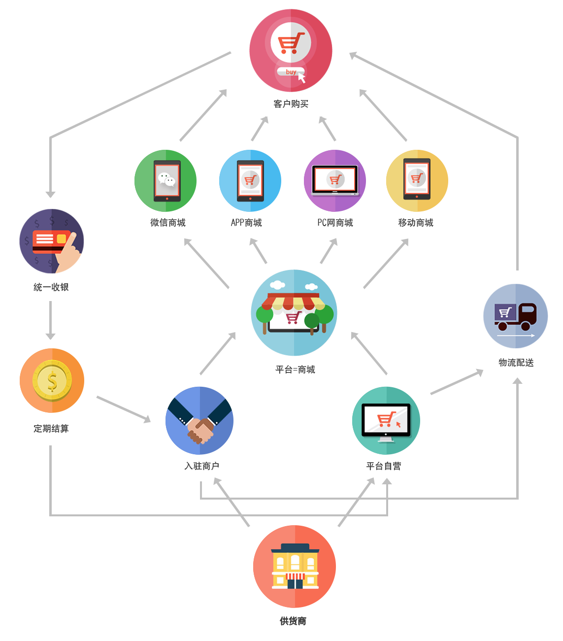 多商户入驻电商平台系统是任我行电商为企业级客户研发的多供货商、多店铺入驻的平台级商城系统,产品以商家入驻为核心,集电商零售、批发于一体,可同时实现平台自营和第三方销售两种运营模式,打通行业、商圈上下游供应链的专业B2B2C系统,是企业开展类京东、天猫的多商家入驻型电商业务的最佳选择。