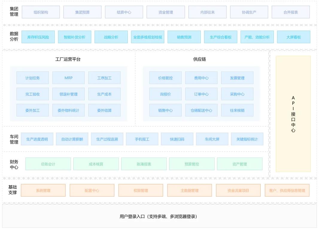 • 全业务流程覆盖:无缝衔接采购、生产、仓储、销售、财务等核心环节,实现供应链全链路数据实时协同,消除信息孤岛。